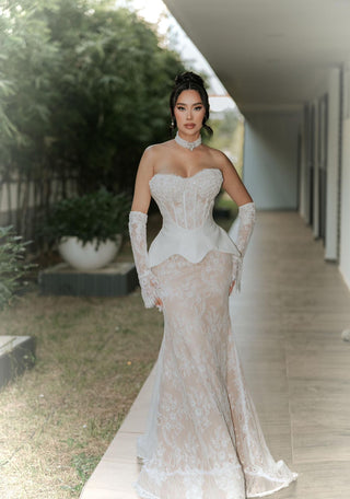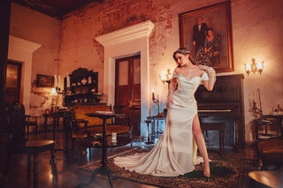 Mi Vestido Blanco - Vestido de Novia Corte Sirena en Satín con sobrefalda desmontable
