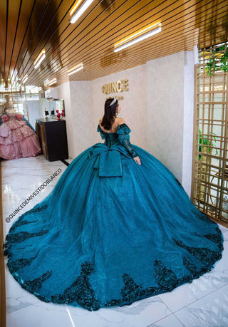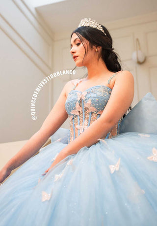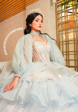 Mi Vestido Blanco - Vestido de Quince Años Azul con Falda ultra esponjada en Tul con Brillo