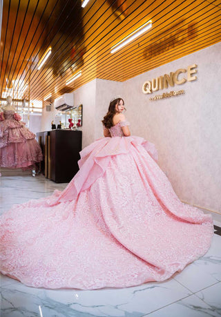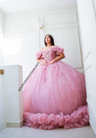 Mi Vestido Blanco - Vestido de Quinceañera Rosa Baby con Falda súper esponjada y Cauda Larga