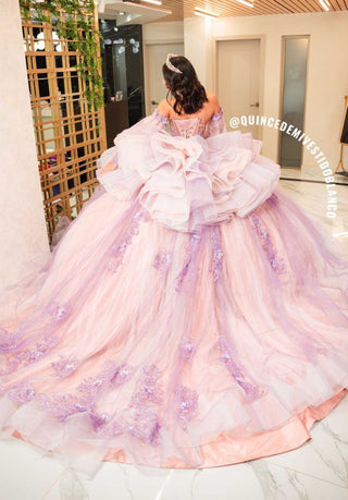 Mi Vestido Blanco - Vestido de Quinceañera Bicolor Rosa Palo con Lila y Falda Ultra Esponjosa