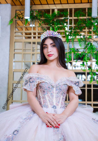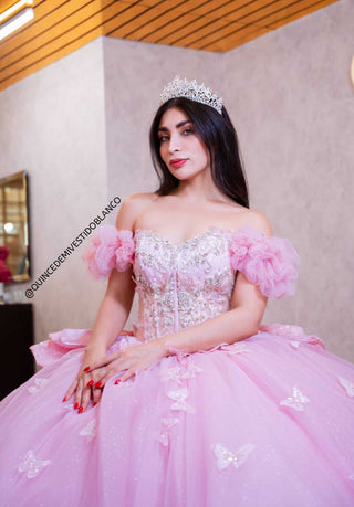 Mi Vestido Blanco - Vestido de Quince Años Rosa con Falda ultra esponjada en Tul con Brillo