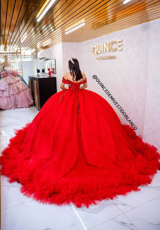 Mi Vestido Blanco - Vestido de Quince Años Rojo con Falda ultra esponjada en Tul con Brillo