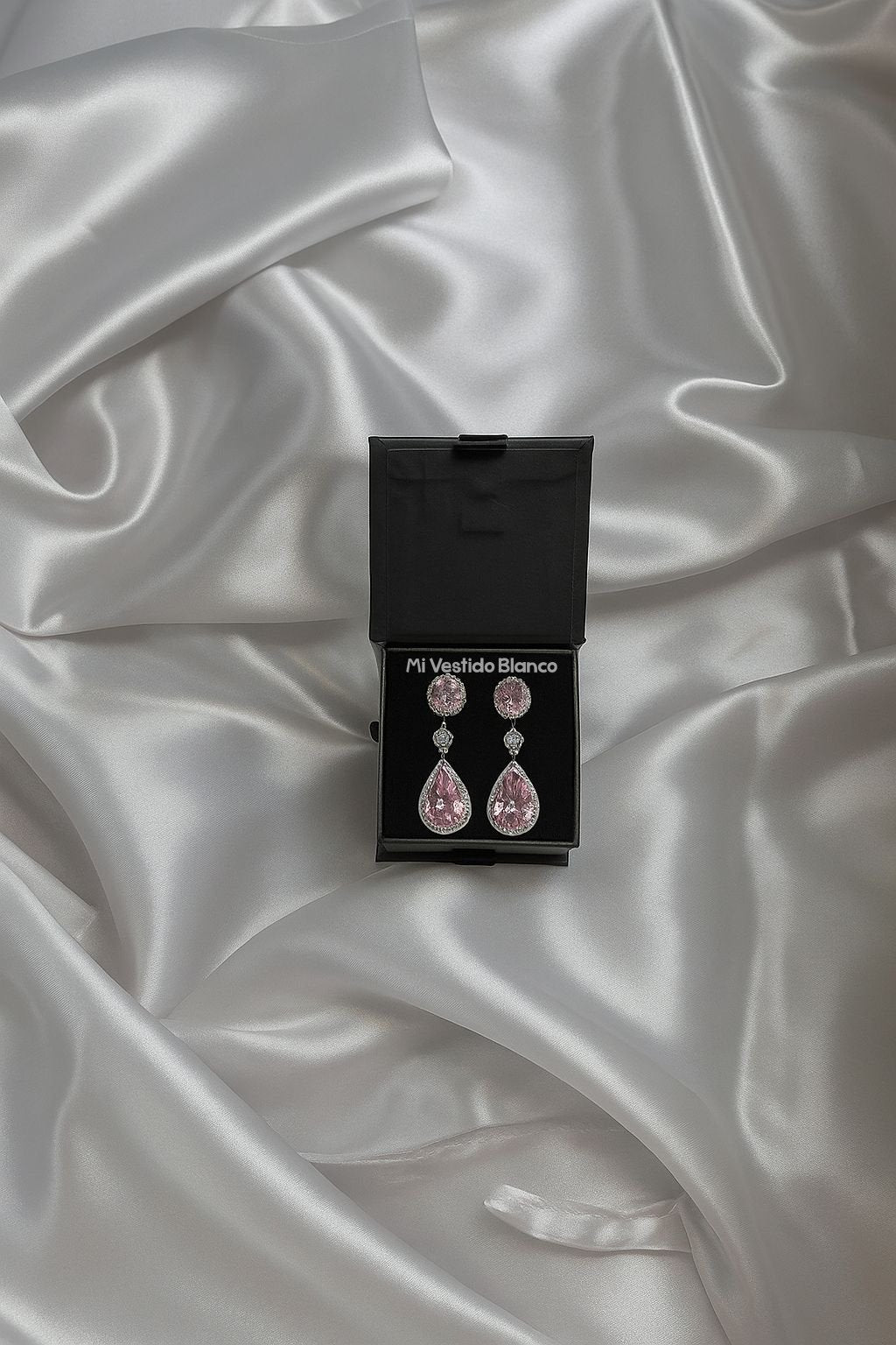 Estos aretes rosas con cristales tipo lágrima destacan por su diseño delicado y lleno de encanto, perfecto para quienes buscan un accesorio elegante con un toque de color romántico. Su piedra central en tono rosa pastel aporta suavidad y feminidad, mientras que el halo de cristales añade un brillo sutil que ilumina el rostro de manera natural. Ideales para novia, quinceañera o invitada, estos aretes combinan a la perfección con vestidos en tonos claros, pasteles o blancos, creando un look dulce, moderno y lleno de estilo. Ligero, sofisticado y visualmente deslumbrante, este diseño es el complemento perfecto para una ocasión especial donde cada detalle importa.